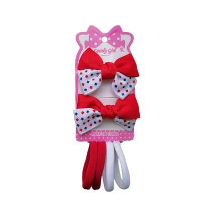 В наборе 2 заколки с бантиками и 4 резиночки. Заколки и резинки не заменимая вещь как для повседневной носки, так и на выход. Это незаменимые аксессуары для создания праздничной прически на длинных или коротких волосах. Красивые декоративные бантики на зажимах - прекрасный подарок для девочки.