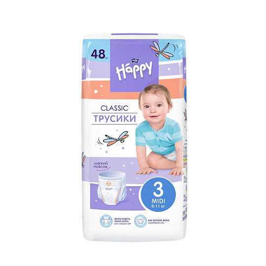 Подгузники-трусики гигиенические bella baby Happy в размере MIDI для малышей весом 6-11 кг