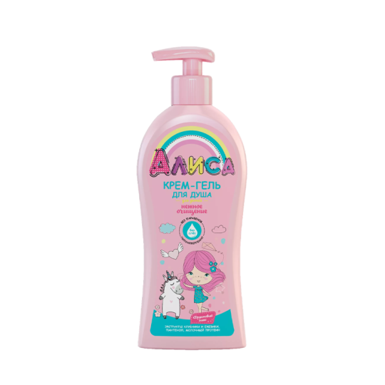 Крем-гель для душа Алиса имеет мягкую моющую основу, нейтральный уровень рH и не вызывает слез, поэтому подходит даже для самых нежных принцесс. В составе содержатся экстракты клубники и ежевики, пантенол, молочный протеин, благодаря которым кожа вашей малышки будет мягкая и увлажненная. Крем-гель бережно очищает кожу, защищая ее от сухости и раздражения.