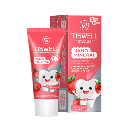 Зубная паста реминерализующая с наногидроксиапатитом Tiswell Клубничный Пломбир с 2 лет 60 г