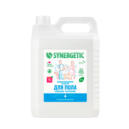 Биоразлагаемое концентрированное средство для мытья поверхностей SYNERGETIC «Нежная чистота» – универсальное средство для ежедневной и генеральной уборки пола и других поверхностей: столов, стен, потолка. Не содержит красителей и ароматизаторов, дерматологически протестировано в Европе. Уникальный комплекс растительных тензидов эффективно удаляет загрязнения и неприятные запахи даже в холодной воде.
