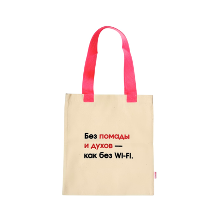 Представляем вам стильную и вместительную сумку-шоппер с оригинальной печатью, которая точно поднимет настроение вам и окружающим: "Без помады и духов - как без Wi-Fi".