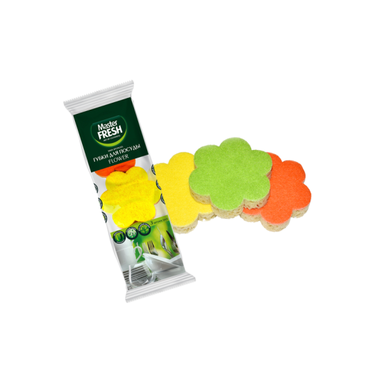 Крупнопористый европейский поролон придает губкам Master FRESH "FLOWER"сильное и устойчивое пенообразование, также губки не крошатся при длительном взаимодействии с водой, абразивная фибра ярких и насыщенных цветов обладает повышенной плотностью. Губка в форме «цветка» разработана для максимального и радостного удобства в ее использовании. Губки не деформируются, легко промываются даже после длительного срока эксплуатации, абразивный слой не отслаивается от поролона.