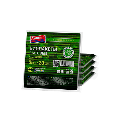 Пакеты для мусора с ручками Avikomp Botanica 35 л Биоразлагаемые Белые 11 мкм 20 шт