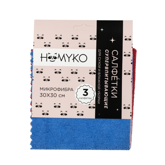 Салфетка из микрофибры HOMYKO Универсальная Ультразвук 250 гр 30*30 см 3 шт