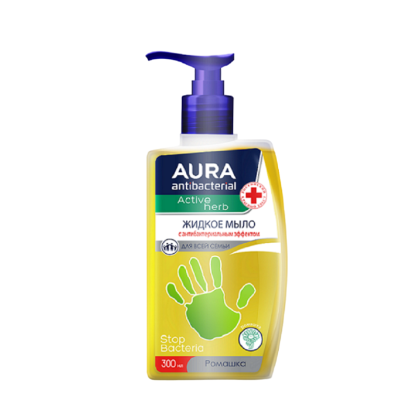 Жидкое антибактериальное мыло AURA с отваром ромашки, не только обеспечивает защиту, но и ухаживает за кожей рук. Ромашка – уникальное растение, богатое полезными для кожи компонентами. Оказывает успокаивающее влияние на кожу, а также подавляет бактериальную и вирусную инфекции.