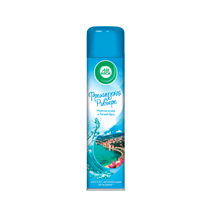 Аэрозоль-освежитель воздуха Air Wick Французская Ривьера* из новой коллекции Ароматы мира** эффективно борется с неприятными запахами***, оставляя ощущение свежести морских волн и легкий бриз Французской Ривьеры.