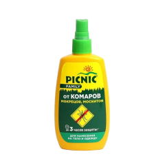 Picnic спрей от комаров не пересушивает кожу и не оставляет жирных следов на одежде. В его составе не содержится спирта и масел.