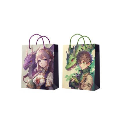 Пакет подарочный Аниме с драконом, ламинированный бумажный 18*23 см, ручки - полипропиленовые веревки.