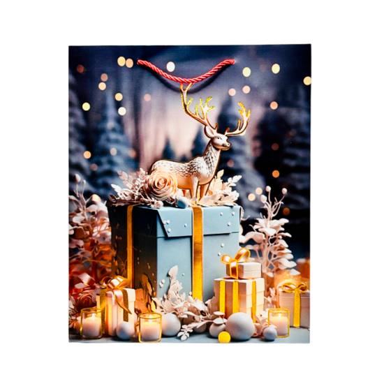 Подарочный пакет с новогодним декором — это простое и удобное решение для праздничной упаковки. Он подойдёт для любых презентов: от сладостей и игрушек до сувениров и аксессуаров. Благодаря прочному материалу и красивому дизайну, он станет неотъемлемой частью новогоднего подарка.