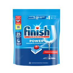 Finish Power All in 1- это удобные в использовании мультифункциональные таблетки для посудомоечной машины. Красный ингредиент таблетки Powerball отмывает посуду до сияющего блеска. Эффективная формула справляется с загрязнениями, пригоревшей пищей и обеспечивает отличный результат каждый раз. Для достижения максимального результата и при очень жесткой воде рекомендуем попробовать специальную соль и ополаскиватель Finish.