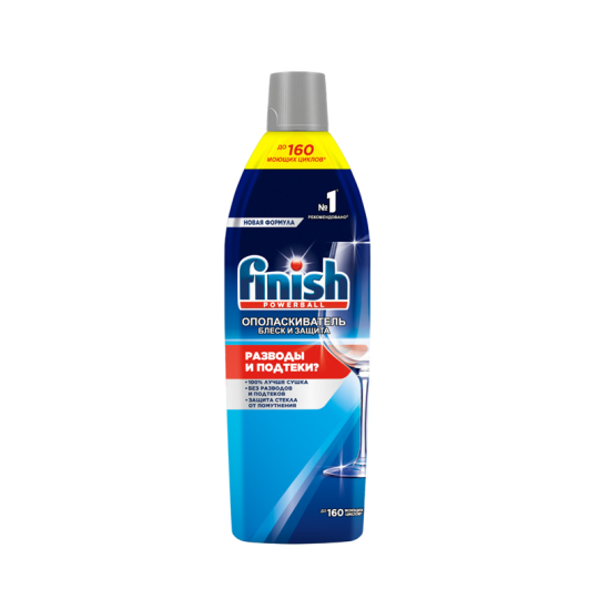 Ополаскиватель Finish Блеск и Защита работает на финальном этапе цикла мойки, помогая избавиться от подтеков и разводов на посуде. Его формула обеспечивает дополнительную защиту от помутнения (коррозии) стекла и придает ослепительное сияние вашим стаканам и бокалам.