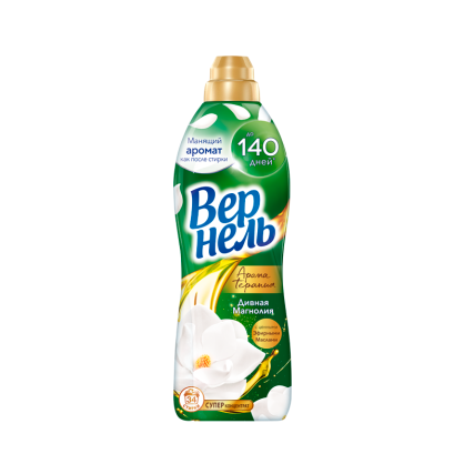 Концентрированный кондиционер для белья Вернель Ароматерапия Дивная магнолия 870 мл (34 стирки) подарит Вашему белью не только невероятную мягкость, но и волшебный аромат лотоса, а благодаря специальным аромакапсулам в составе кондиционер для стирки Вернель позволит наслаждаться интенсивным ароматом белья до 140 дней.