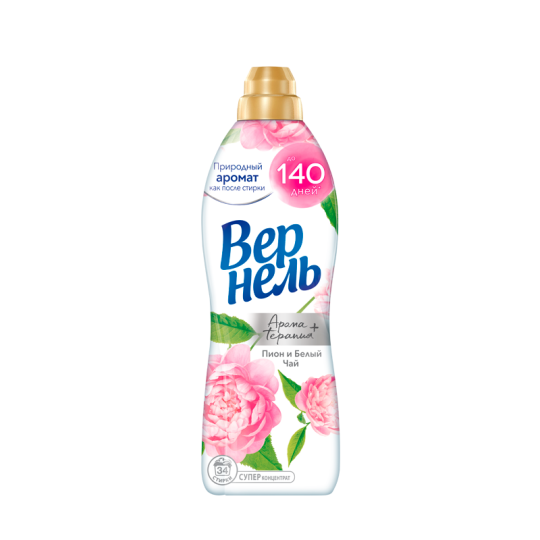 Концентрированный кондиционер для белья Вернель Ароматерапия+ Пион и Белый Чай 870 мл (34 стирки) подарит Вашему белью нежный, расслабляющий аромат, вдохновленный самой природой. Благодаря специальным аромакапсулам кондиционер для стирки Вернель позволит наслаждаться интенсивным ароматом до 140 дней. Кондиционер для белья Вернель Ароматерапия+ отвлечет Вас от повседневных забот с ароматом пиона, белого чая и нотками кедра и мускуса.