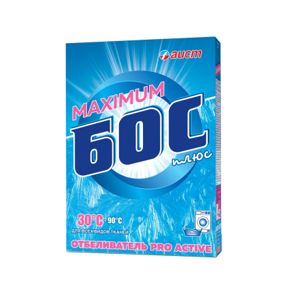 Усиленная формула средства «БОС» - плюс maximum с максимальным содержанием активного кислорода специально разработана для отбеливания без кипячения всех видов тканей, включая шерсть и шёлк, при низких температурах (30°С-50ºС).