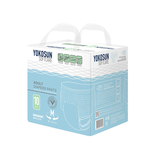 Подгузники-трусики Yokosun для взрослых (на резинке), размер M (80-120см),