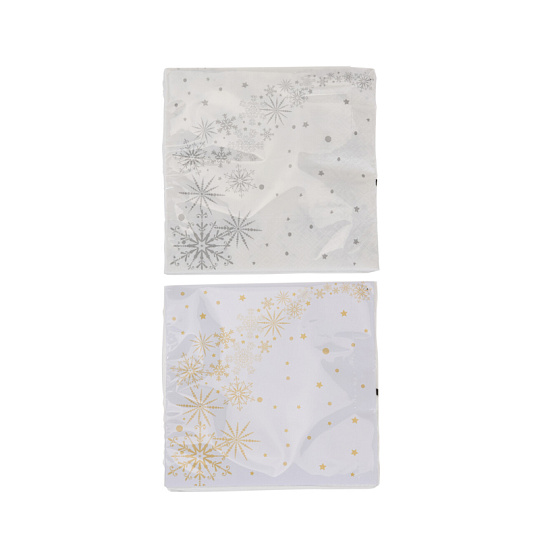Салфетки кухонные двухслойные для сервировки стола. Размер 33х33 см, дизайн "Снежинки" в ассортименте.