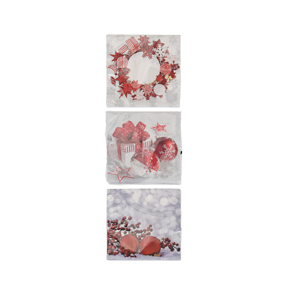 Салфетки кухонные для сервировки стола придадут кухне новогоднее настроение. Размер 33х33 см, 20 штук в упаковке, дизайн "рождественский" в ассортименте.