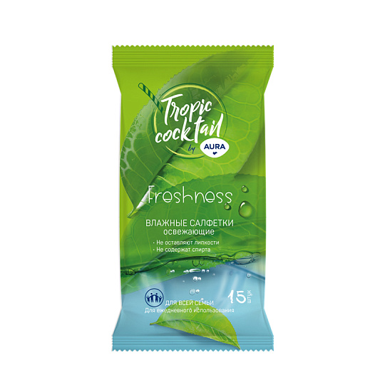 Влажные салфетки освежающие AURA Tropic Cocktail Освежающие 15 шт