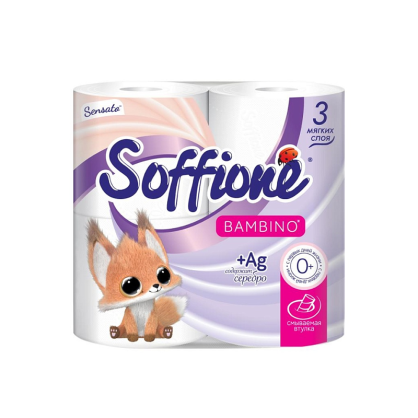 Туалетная бумага Soffione Sensato Bambino 3-слоя 4 шт