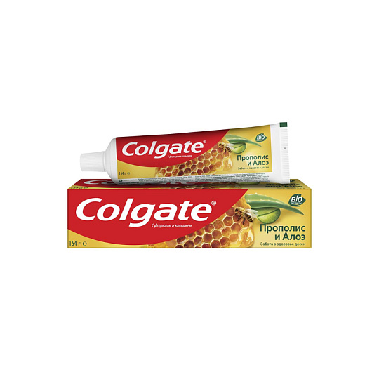 Зубная паста Colgate Прополис и Алоэ заботится о здоровье ваших десен, обеспечивает защиту от кариеса и освежает дыхание. Целебные и полезные качества прополиса известны с давних времен; среди них — бактерицидное и успокаивающее свойство. Алоэ — чудо-растение, которое известно своими ранозаживляющими свойствами. Зубная паста произведена с заботой, чтобы Вы могли чаще улыбаться!