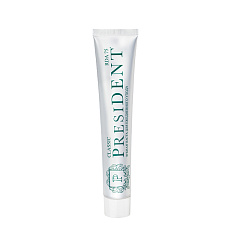 PRESIDENT Classic зубная паста препятствует образованию кариеса в местах реставрации. Специально подобранные абразивы безопасно и эффективно удаляют налет, очищают и полируют зубную эмаль.