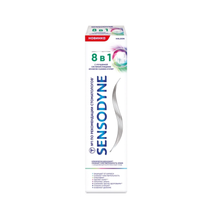 Стоматологи рекомендуют Sensodyne на протяжении многих лет. Sensodyne 8 в 1 - это фторидсодержащая зубная паста с уникальной формулой, которая подходит для регулярного применения и обеспечивает ежедневный уход за чувствительными зубами.