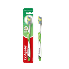 Щетка для зубов со средней жесткостью от производителя Colgate, с подушечкой для чистки языка эффективно обеспечивает чистоту всей полости рта.