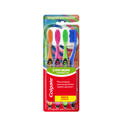 Зубная щетка Colgate Сенсация Свежести Special Edition 4шт средней жесткости обеспечивает многомерную чистку для более свежего дыхания*.