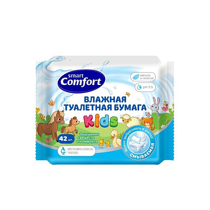 Влажная туалетная бумага Comfort smart Kids №42 с Ромашкой 42 шт