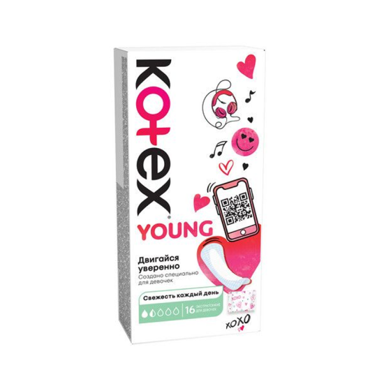 Прокладки Kotex Young — ваш верный помощник в поддержании комфорта и уверенности в себе каждый день.