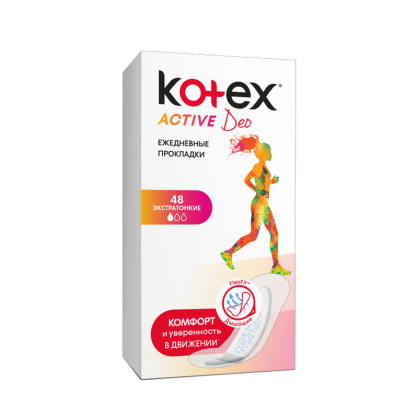 Новые экстратонкие ежедневные прокладки Kotex Active Deo (Котекс Эктив Део) созданы специально для активных девушек.