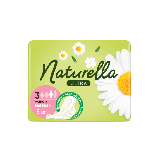 Мягкие гигиенические прокладки Naturella Ultra Maxi Ромашка с крылышками, помогающими надежно фиксировать прокладку и обеспечивают дополнительную защиту кожи в интимной зоне в дневное время при обильных выделениях. Это единственные женские прокладки, содержащие Dermacrem — уникальный сухой лосьон против раздражения кожи, действие которого доказано клинически.