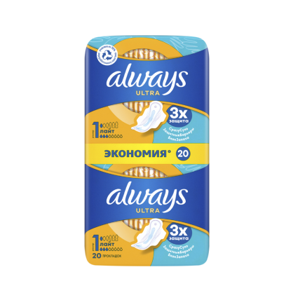 Где бы вы ни оказались в течение дня, прокладки Always Ultra (Размер 1) обеспечат вам непревзойденную защиту. Always Ultra обеспечивают до 100% защиты от протеканий. Прокладки Always Ultra содержат гель, который впитывает и удерживает влагу, предотвращая протекания. А благодаря технологии нейтрализации запаха эти прокладки запирают неприятный запах, а не маскируют его. Гигиенические прокладки Always Ultra толщиной всего 3 мм дарят невероятное ощущение комфорта. Выбирайте надежную защиту специально для вашей фигуры и интенсивности выделений с Always MyFit.