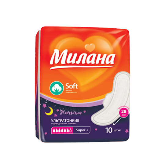 Гигиенические прокладки Милана Ультратонкие Soft Super Plus 6 капель 10 шт