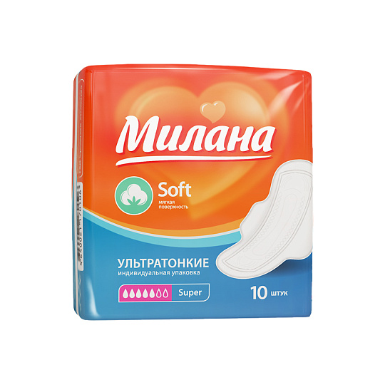 Гигиенические прокладки Милана Ультратонкие Soft Super 6 капель 10 шт