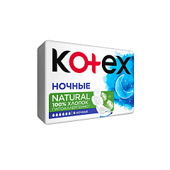 Гигиенические прокладки Kotex Natural Ночные 6 капель 6 шт
