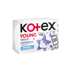 Обновленные женские ночные гигиенические прокладки Кotex Young – наша лучшая защита и комфорт для девочек в течение всей ночи! Благодаря уникальному верхнему слою и дополнительному абсорбирующему компоненту, прокладка впитывает быстро и на 50% больше, обеспечивая ощущение сухости и усиленной защиты. Длина прокладки разработана специально для девочек, она на 20% длиннее дневной прокладки для дополнительной защиты ночью.