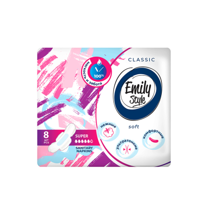 Прокладки гигиенические Emily STYLE SUPER (5 капель) специально созданы для повседневной гигиены женщин во время критических дней. Эффективно впитывают и надежно защищают от протекания, придавая ощущение свежести. Мягкий внутренний слой заботливо защищает кожу от раздражений, позволяет ей дышать.