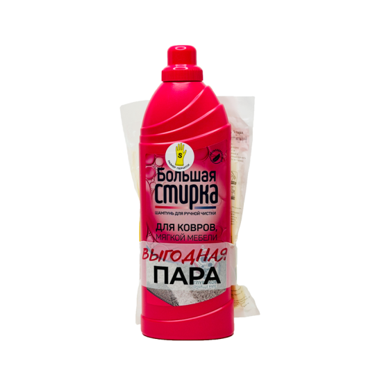 Шампунь для чистки ковров Большая стирка Для Ручной Чистки 1000г. Шампунь отлично справляется с въевшейся грязи и пыли с ковров и обивки. Гипоаллергенный густой шампунь образует обильную пену и устраняет неприятные запахи, а ваш ковер и обивка мебели сияют чистотой и свежестью - эффект значительно сильнее, чем при обычной обработке пылесосом.