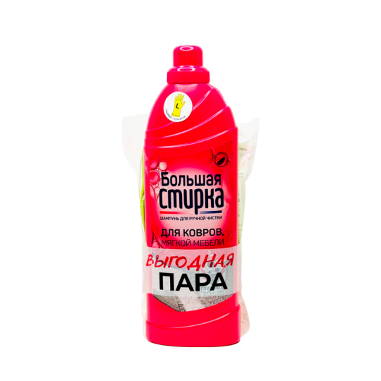 Шампунь для чистки ковров Большая стирка Для Ручной Чистки 1000г. Шампунь отлично справляется с въевшейся грязи и пыли с ковров и обивки. Гипоаллергенный густой шампунь образует обильную пену и устраняет неприятные запахи, а ваш ковер и обивка мебели сияют чистотой и свежестью - эффект значительно сильнее, чем при обычной обработке пылесосом.