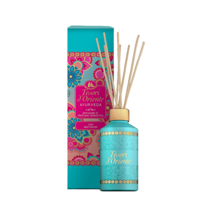 Диффузор ароматический Ayurveda Tesori d’Oriente приглашает Вас окунуться в мир баланса и гармонии. Уникальная разработка итальянских парфюмеров создает аромадиффузор с палочками с ярким ароматом.