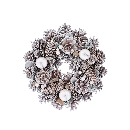 Рождественская декорация "Заснеженный венок" для украшения Вашего интерьера, размер 26x26x8 см.