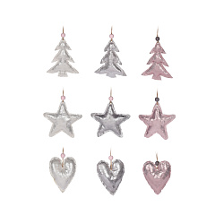 Ёлочное украшение елка/звезда/сердце в ассортименте, цвет серебро/розовый, размер 14,5x3x13,5 см.