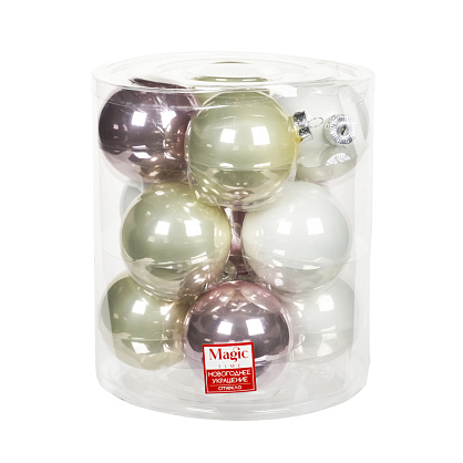 Яркая палитра набора из новогодних шаров в бело-розовых оттенках станет прекрасным декором праздничного убранства дома. Шарики отлично украсят новогоднюю елку, дополнят собой праздничный интерьер и просто будут радовать окружающих. Набор шаров выполнен из стекла. В наборе 12 штук.