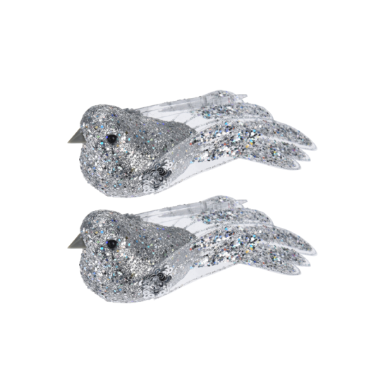 Набор из двух птичек на зажиме-клипсе в серебрянных тонах оживит новогодний наряд елки.