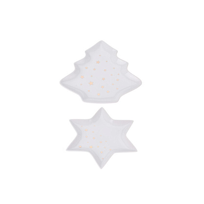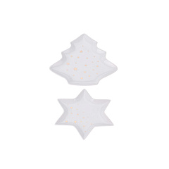 Тарелка с рождественским дизайном придаст трапезе новогоднее настроение. Размер тарелки "звезды" 28x28см, тарелки "елка" 27x26см.
