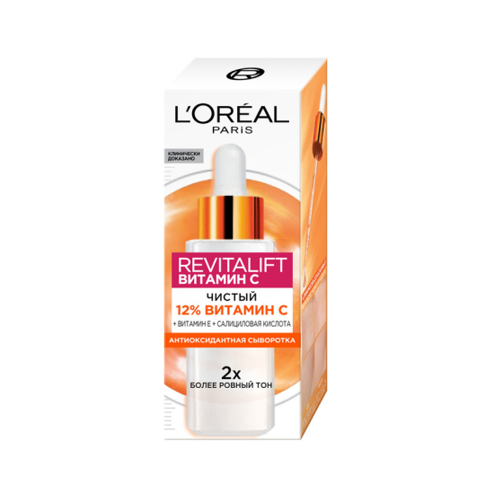 L'Oreal Paris в течение 5 лет тпроводил научные исследования, протестировал более 200 формул и теперь представляет революционную сыворотку Revitalift с витамином C в концентрации 12%, витамином E и салициловой кислотой. В состав формулы входят чистый стабилизированнй витамин C в высокой концентрации, а также витамин E и салициловая кислота для оптимального эффекта. Уникальное сочетание активных веществ специально подобрано для борьбы с тусклым цветом и неровным тоном лица, для выравнивания текстуры кожи, сужения пор и разглаживания первых морщинок. Уже после 1 месяца применения кожа становится в 2 раза светлее, а ее гладкость увеличивается в 3 раза.