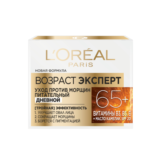 Питательный уход против морщин Возраст Эксперт 65+ создан специально для ухода за кожей после 65 лет и визуально устраняет возрастные признаки.