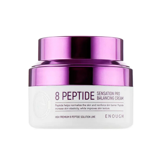 Enough 8 Peptide Sensation Pro Balancing Cream. Антивозрастной крем на основе пептидов - против старения и увядания кожи. Восстанавливает, обновляет и омолаживает её на клеточном уровне.